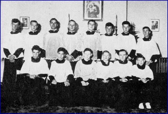 Senior Mass Servers 1939 1st row: Norbert Bay, Fritzie Friedmann, William McKenzie, William O’Hearn, Thomas Falone, Joseph Burch. 2nd row: Bernard Recktenwald, George Stemm, Francis Secor, Carl Shircliff, Francis Longaker, John Sheehan, Walter Bender, Henry Fichteman. |