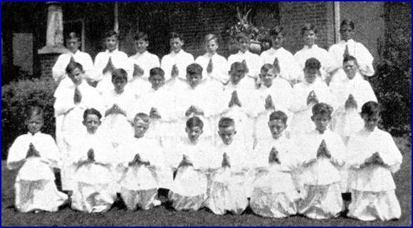 Junior Mass Servers 1939 1st row: John Schulten, Allan McCoy, Eugene Mudd, Kenneth Kaelin, James Alvey, C. J. Simms, Arman Stone, William Cahill. 2nd row: Henry Kleinholter, George Schaefer, Bernard Coons, Robert Sheehan, Roger Howard, Mark Craven, Leonard Yount, William Mooney. 3rd row: Henry Shircliff, Kenneth Otto, William Hatzell, John Miller, John Schaefer, Francis Blain, Lindsey Cahill, Charles Owen, Lawrence Schulten. |