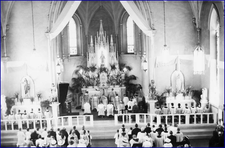 When Rev. John A. Lyons (photo left) was appointed to the Church of Our Lady on August 17, 1938, he began to formulate the plans for the centennial celebration. A history of the parish had never been written, so it was deemed advisable to begin immediately the collection of material. It was not until June of 1939 that the compilers felt they had exhausted every source of information.