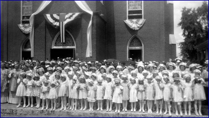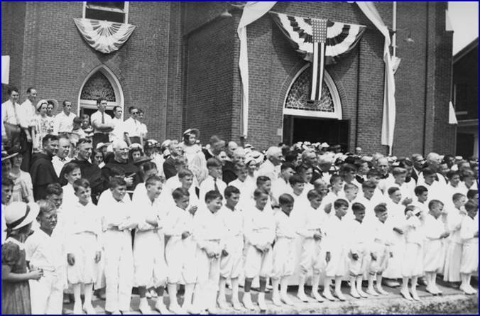 During the one hundred years of its existence, Our Lady’s parish both witnessed the growth and development of the church and the entire Metropolitan area of Louisville and contributed its share to that growth and development, by participating in the manifold religious activities which resulted, just two years ago, in Louisville being elevated to the rank of an Archdiocese.